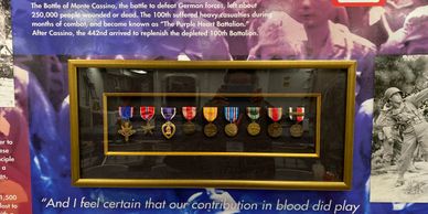 Central elements of the seal that symbolize the incredible bravery, fighting spirit, and lasting legacy of the 442 Regimental Combat Team that the Senator served in during WWII.